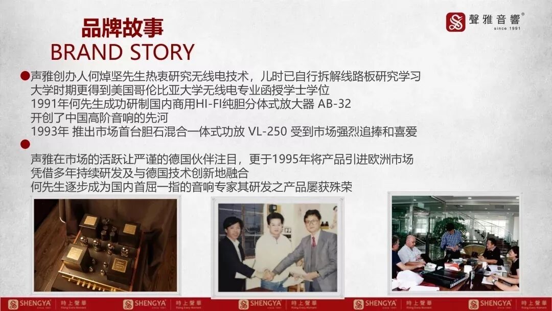 创立于1991年的声雅,可以说见证了我国的音响市场的繁荣与辉煌,更推动着这一进程,随着市场经济的大浪淘沙,历经28年风雨不但能够屹立不倒,且凭借丰富的产品品类、优异的声音品质和可靠的产品质量不仅在国内市场积累了良好的口碑,更在国际市场上为国产音响闯出了一片天地。
